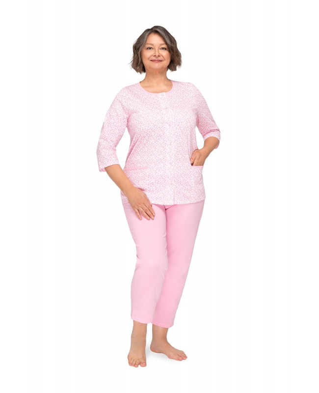 Wygodna i klasyczna damska piżama rozpinana uszyta z wysokiej jakości 100% bawełny to doskonały wybór dla kobiet w każdym wieku, a w szczególności dla osób starszych, które cenią sobie komfort, praktyczność i elegancję. Piżama została zaprojektowana przez polskiego producenta specjalizującego się w produkcji bielizny nocnej dla seniorów i osób potrzebujących wygodnej odzieży domowej.