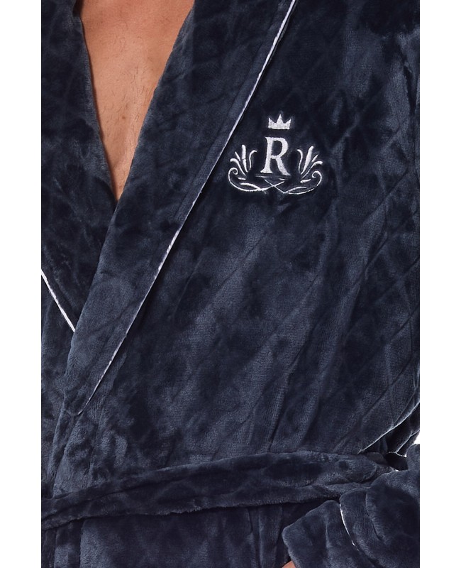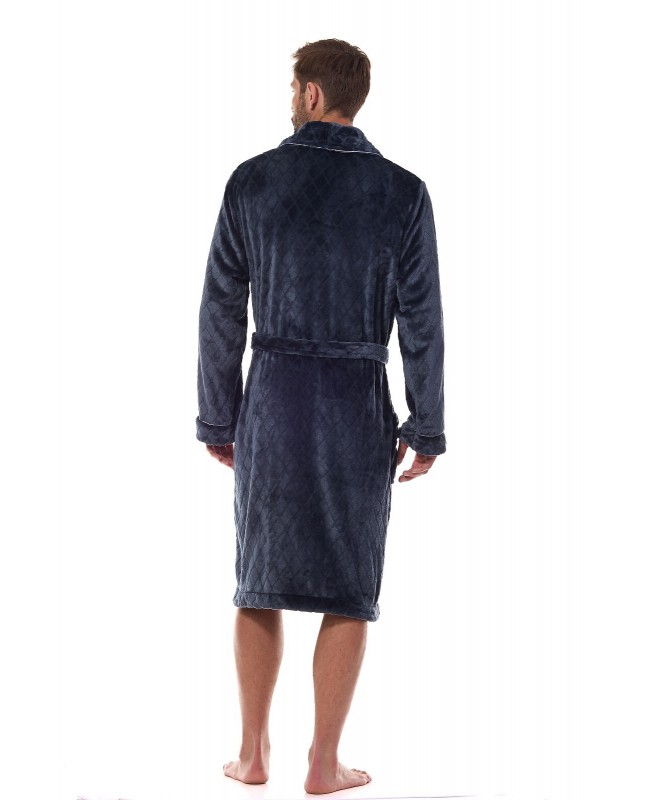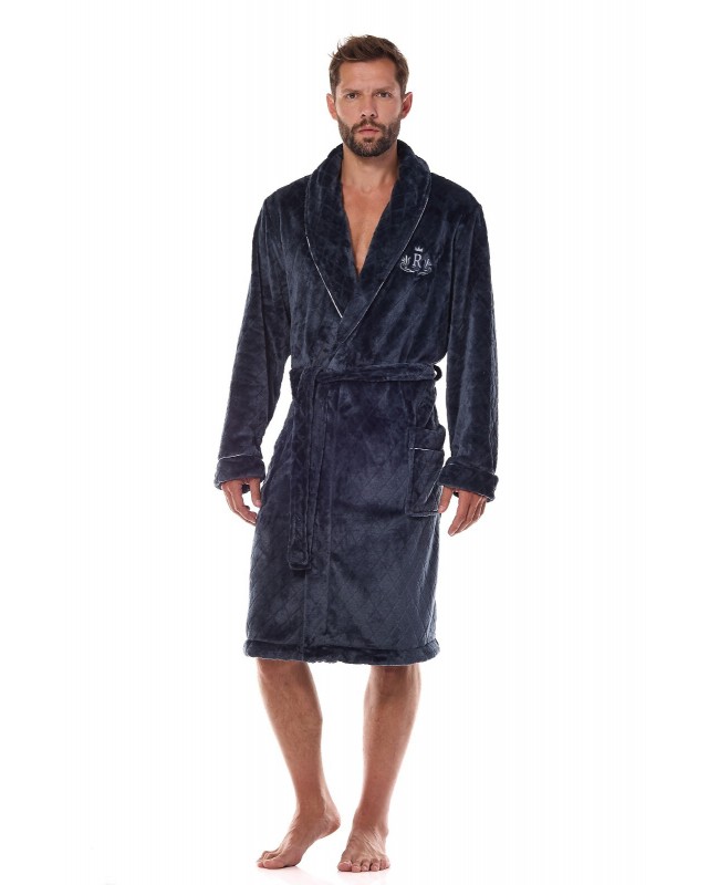 Szlafrok męski L&L 2453 Ready M-2XL miękka dzianina kołnierz szalowy kieszenie