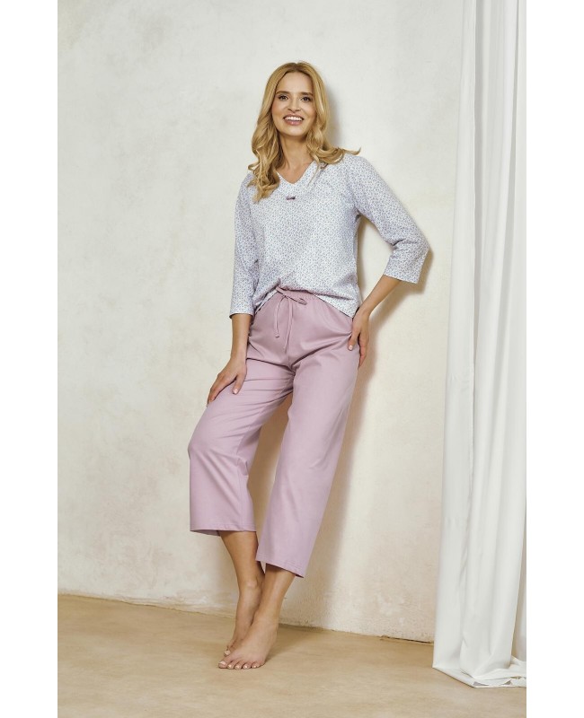 Piżama damska bawełniana Taro Debora 3448 – wzorzysta koszulka 3/4 i kuloty z wiązaniem
