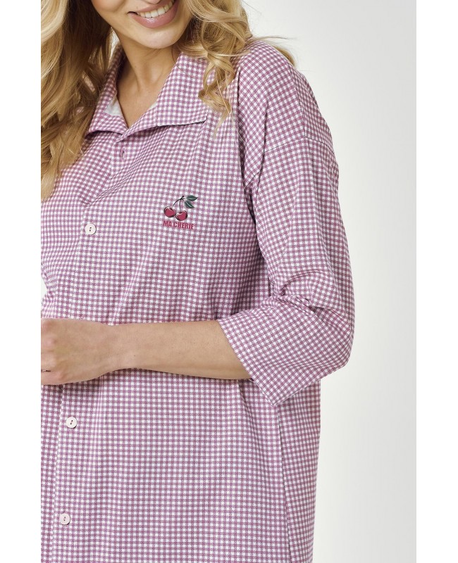 Bawełniana koszula nocna Taro Joliee 3436 – rozpinana w kratkę, z kołnierzykiem i rękawem 3/4