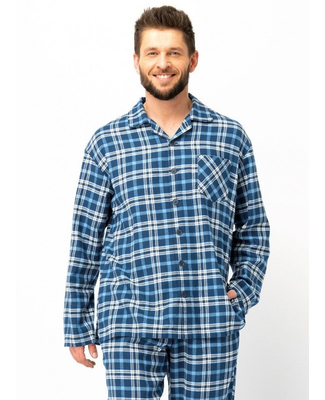 Piżama męska Key MNS 492 B25 dł/r flanelowa w kratkę, rozpinana z kieszeniami M-2XL