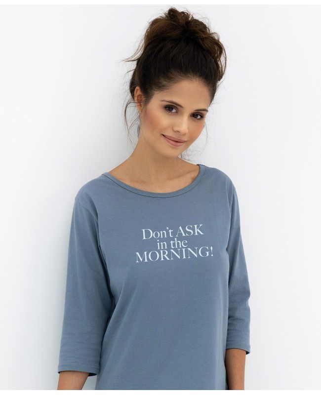 Fason koszuli został starannie dopracowany, aby każda kobieta mogła poczuć się w niej swobodnie i pięknie. Rękaw 3/4 to kompromis między lekkością a funkcjonalnością – nie krępuje ruchów, a jednocześnie daje poczucie przytulności. Delikatnie wydłużony tył nadaje całości nowoczesnego charakteru i sprawia, że koszula świetnie układa się na sylwetce. Jej długość przed kolano jest praktyczna i wygodna zarówno do spania, jak i do noszenia w domowych chwilach relaksu.