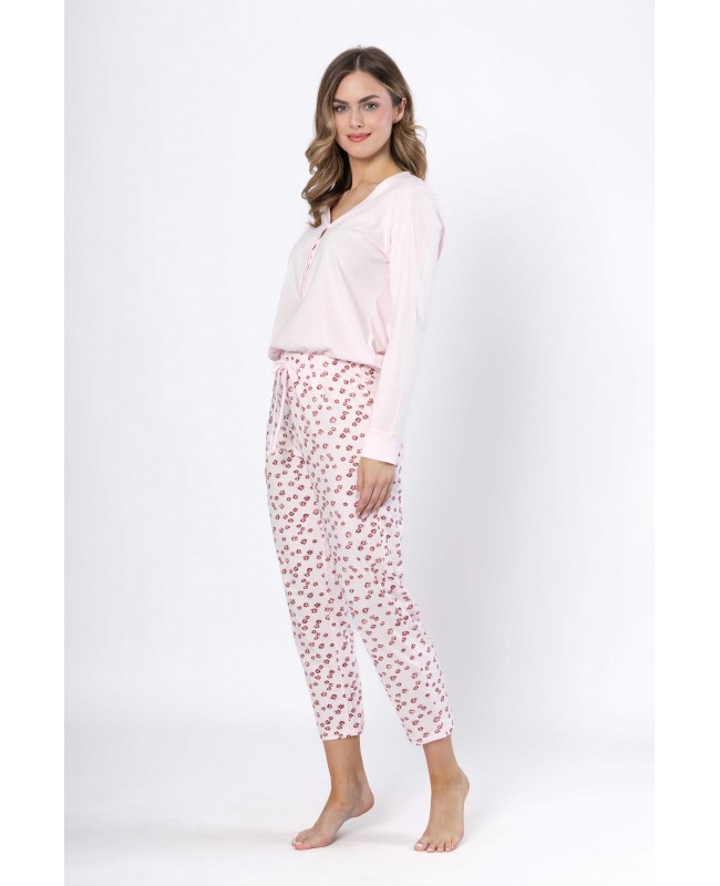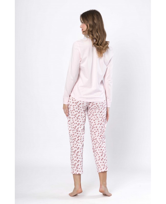 Piżama damska Leveza Grażyna 1623 bawełniana długi rękaw spodnie 7/8