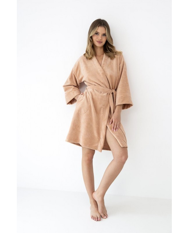 Szlafrok damski Sensis Goldie krótki rękaw 3/4 wiązany bambus bawełna