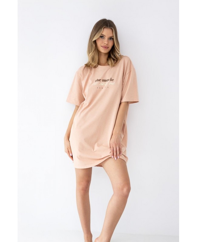 Koszula nocna damska Sensis Anika to idealna propozycja dla kobiet, które cenią wygodę, lekkość i nowoczesny styl. Wykonana z miękkiej dzianiny bawełnianej z dodatkiem włókien elastycznych, zapewnia komfort noszenia i swobodę ruchów podczas snu oraz domowego wypoczynku. Krótki rękaw i klasyczny, okrągły dekolt sprawiają, że model doskonale sprawdza się w cieplejsze noce. Ozdobna grafika umieszczona z przodu nadaje koszuli modnego, kobiecego charakteru. Krótki fason podkreśla lekkość formy i zapewnia pełną wygodę użytkowania.