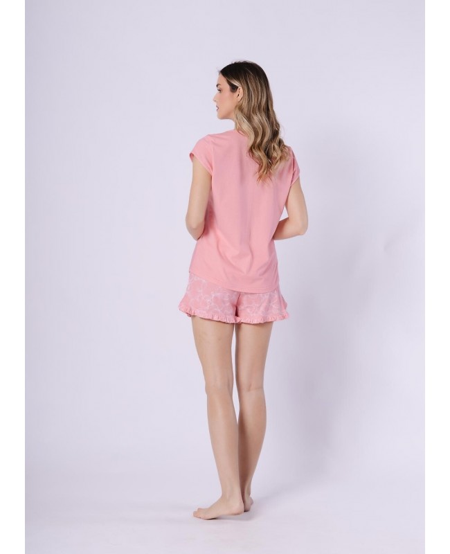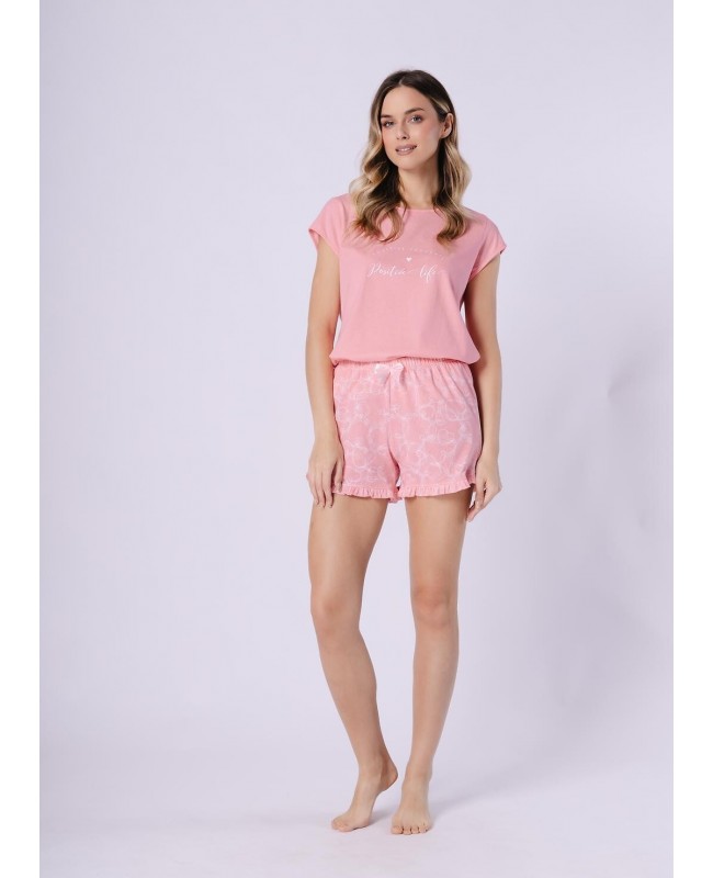 Piżama damska Marlena 1713 bawełna 100% krótki rękaw falbanka letnia