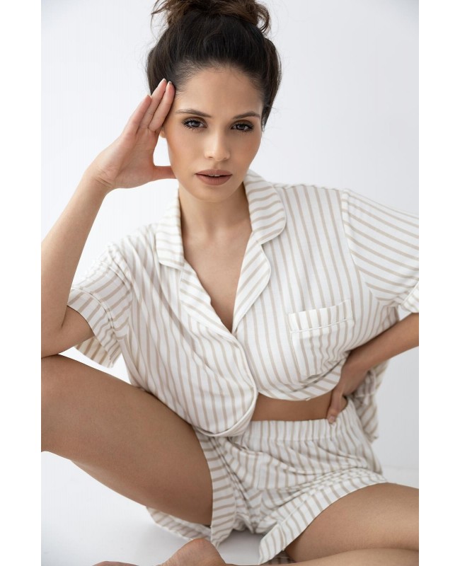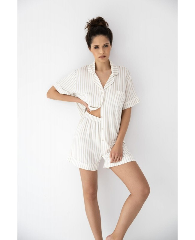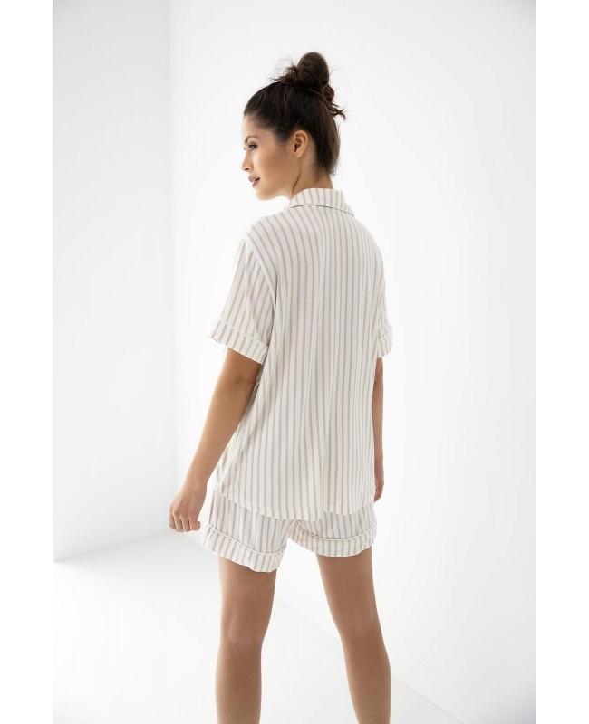Piżama damska Davina wiskoza rozpinana paski krótki rękaw z kołnierzykiem