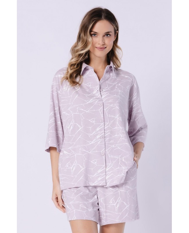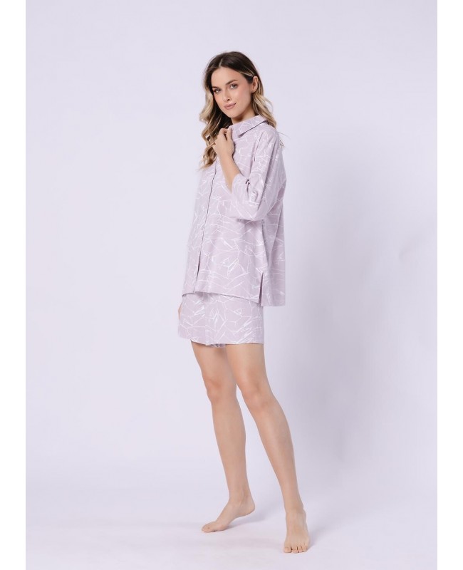 Bawełniana piżama damska rozpinana Leveza Żaneta 1706 to połączenie komfortu, naturalnej tkaniny i kobiecego fasonu. Wykonana w 100% z wysokiej jakości wzorzystej bawełny, zapewnia przewiewność i wygodę przez cały rok. Koszulka z kołnierzykiem, zapinana na guziki, z rękawem 3/4 gwarantuje swobodę ruchów i elegancki wygląd. Luźne spodenki z praktycznymi kieszeniami zwiększają funkcjonalność zestawu. Model dostępny w rozmiarach M-2XL. Produkt polski, starannie wykończony, idealny do codziennego wypoczynku i jako prezent.